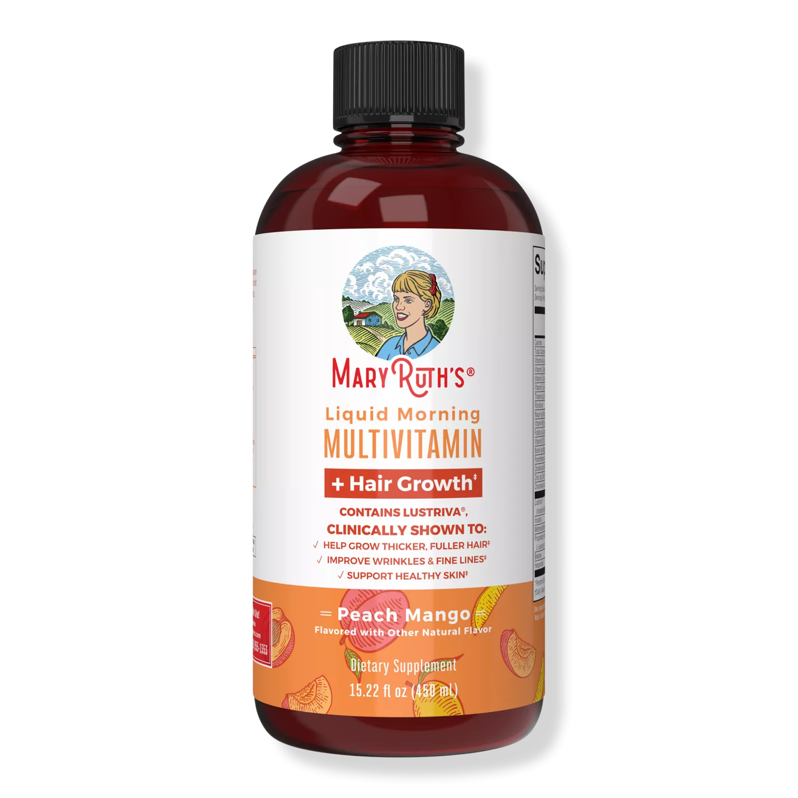 MaryRuth's Liquid Morning Multivitamin + Hair Growth, Peach Mango, 15.22 fl oz (450 ml)
